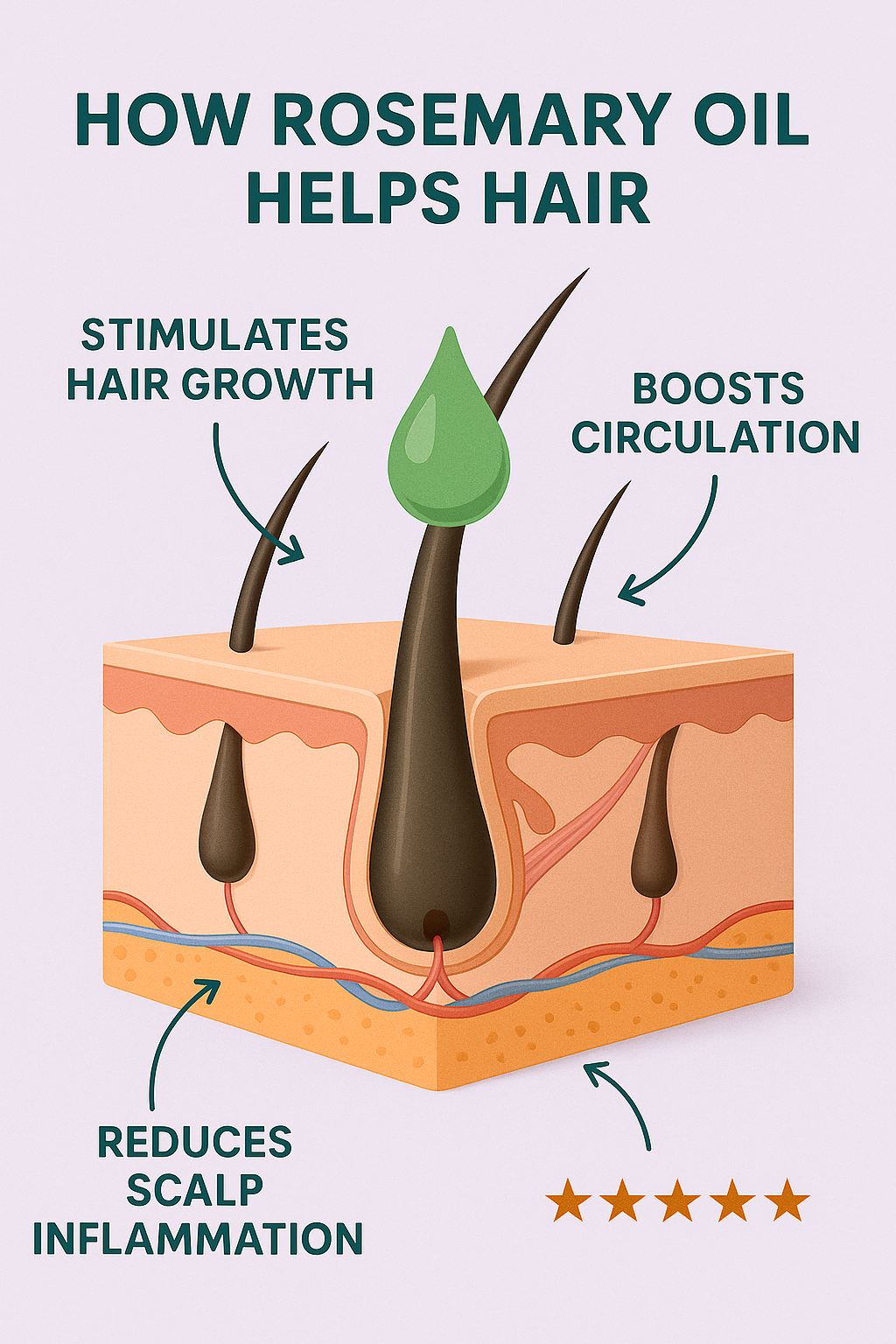 Rosemary oil contains carnosic acid, which stimulates blood circulation to your scalp, delivering more oxygen and nutrients directly to hair follicles—studies show it rivals minoxidil for promoting thickness without harsh side effects. Ginger root oil amplifies this effect with gingerol, a bioactive compound that increases circulation further while fighting inflammation and oxidative stress that damages follicles. Meanwhile, castor and coconut oils strengthen the hair shaft and seal the cuticle, creating a complete growth ecosystem where stimulation meets protection.